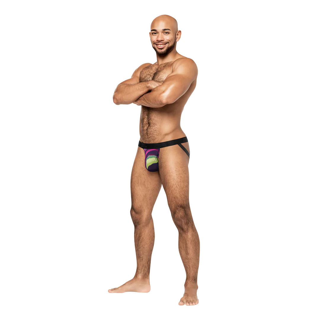 Esta cueca jockstrap, multicolorida, dá um toque moderno e arrojado.
